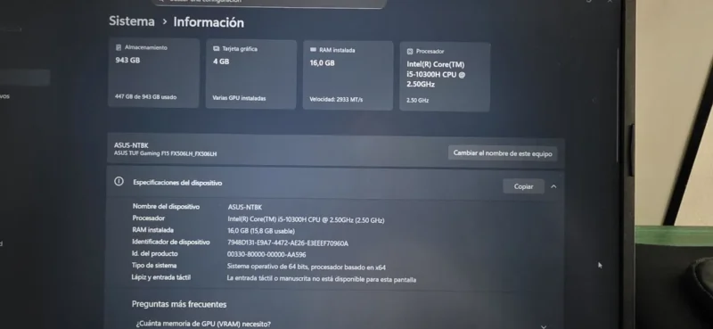 Tiene agregado otro disco nVME de 512Gb (en total tiene 1Tb de disco)